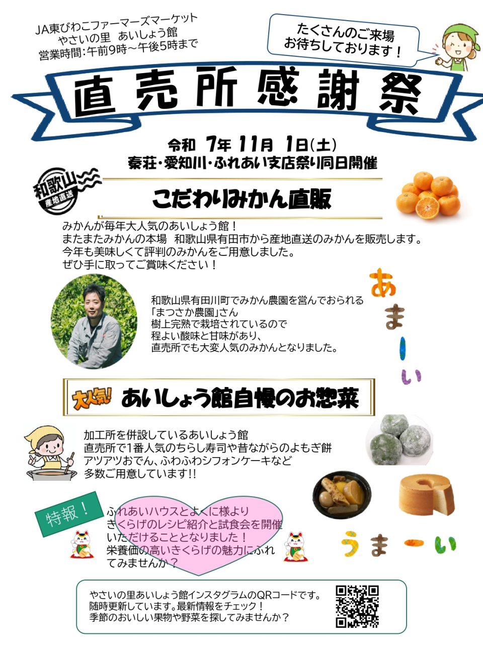あいしょう館直売所感謝祭も同日開催!