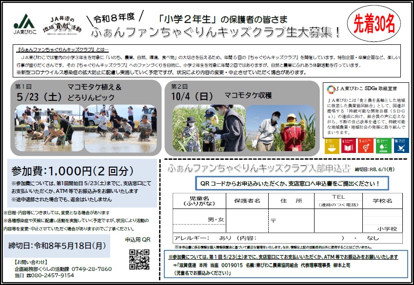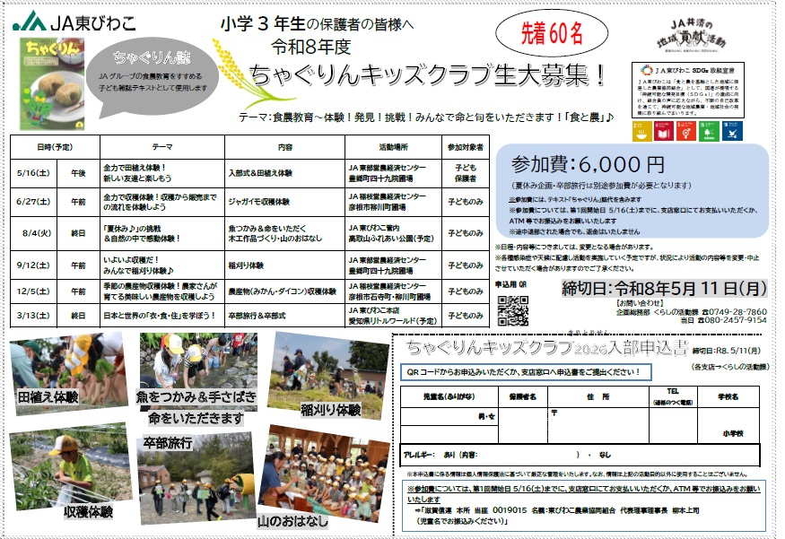 令和8年度のちゃぐりんキッズクラブ・ふぁんファンちゃぐりんキッズクラブ生の募集を開始しました!